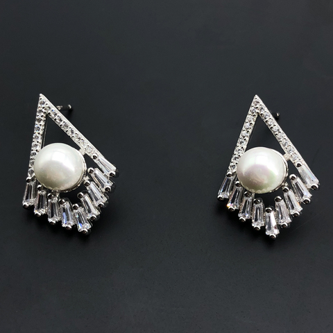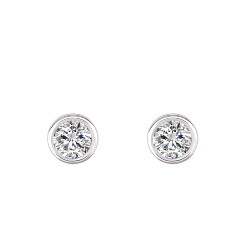 Custom 925 Silvery Rhodium Plated Zircon Stud Earrings Simple Diamond Cut for Wedding Anniversary Party Gift