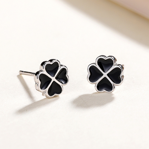 Custom Supplier's 925 Sterling Silver Stud Earrings for Women Black Drop Glue Process Platinum Plating Weddings Parties Gifts