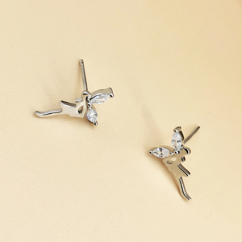 Exquisite Platinum & Rose Gold Plated Zircon Earrings Angle Wings Stud Earrings Cute Style for Women and Girls for Parties